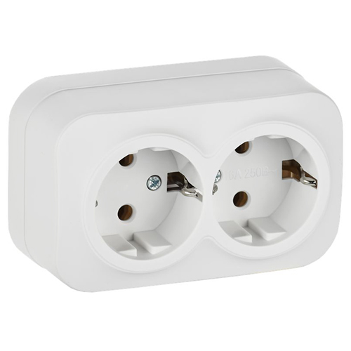 Розетка двухместная IEK РС22-3-ХБм Glory (16 А, IP20) открытой установки, с заземлением, белый матовый