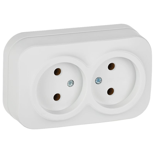 Розетка двухместная IEK РС22-2-ХБм Glory (10 А, IP20) открытой установки, белый матовый