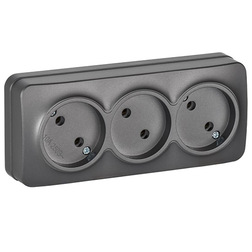 Розетка трехместная IEK РС23-2-ХСм Glory (10 А, IP20) открытой установки, сталь матовый