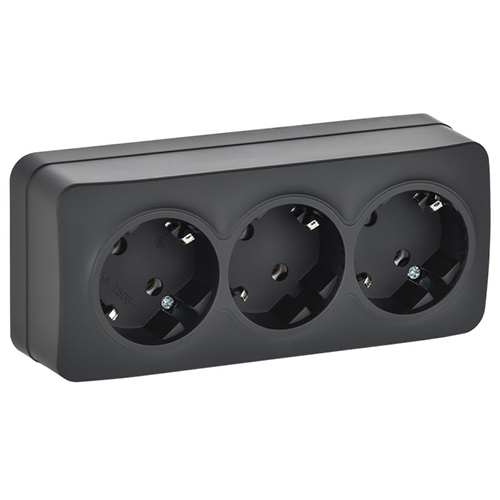 Розетка трехместная IEK РС23-3-ХЧм Glory (16 А, IP20) открытой установки, с заземлением, черный матовый
