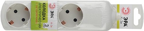 Колодка электрическая 3-местная K-3e "Эра" (16 А, IP20) с заземлением и защитными шторками, белый