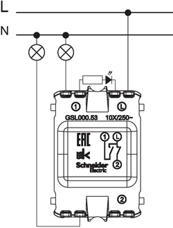 * АХ означает способность выключателя работать с реактивной нагрузкой номинальным током 10 А, то есть с люминесцентными светильниками.