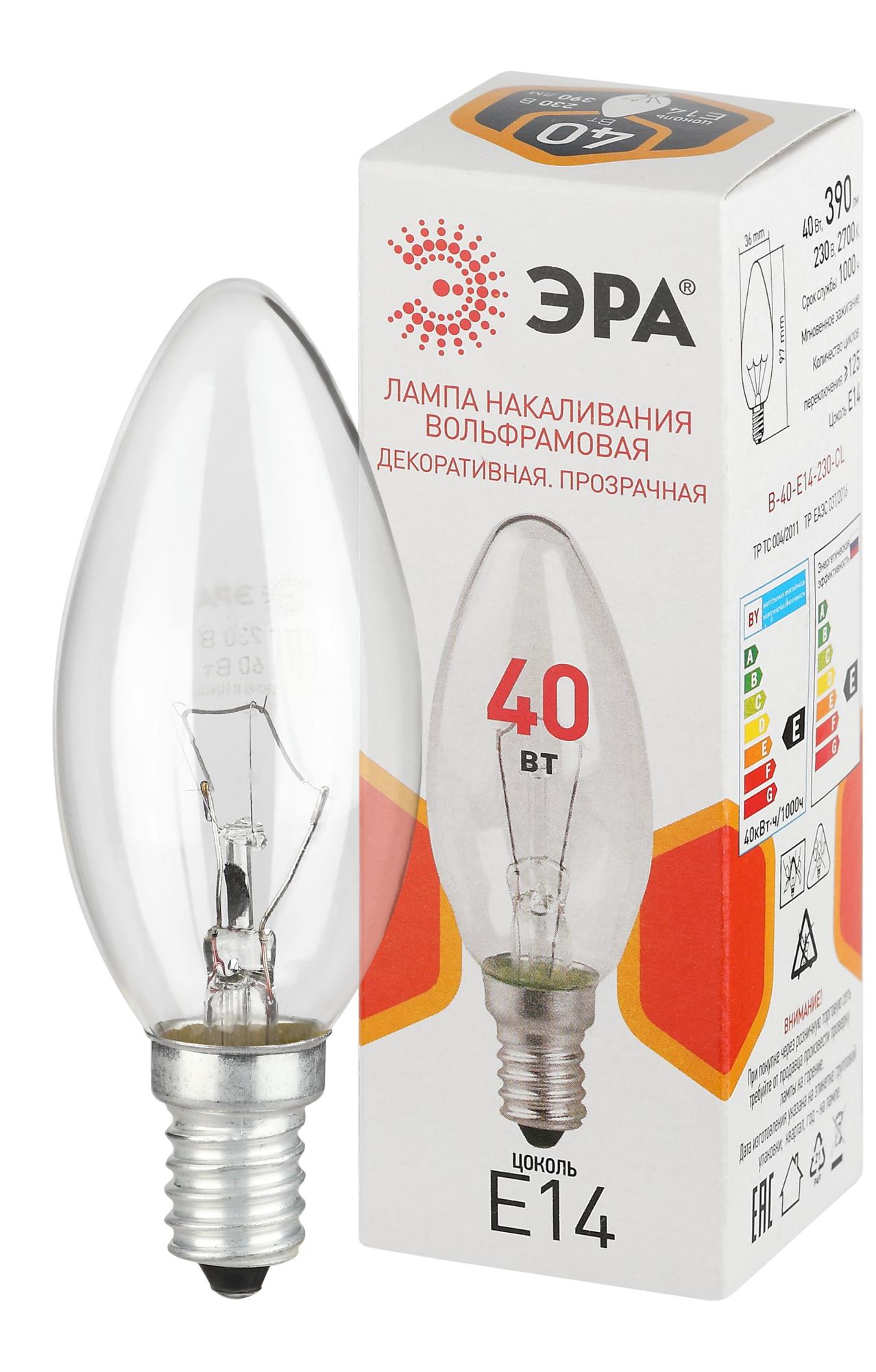 Лампа накаливания Navigator NI-B-40-230-E14-CL (свеча, E14, 40 Вт, 400 лм, колба прозрачная)