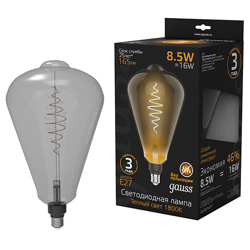 Лампа светодиодная Gauss Filament ST164 8,5W 165lm 1800К Е27 Gray Flexible LED (8,5 Вт, 165 лм, серая колба)