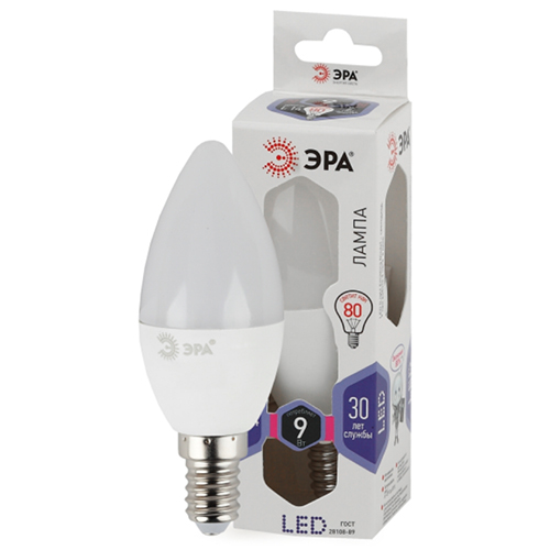 Лампа светодиодная STD LED B35-9W-860-E14 "Эра" (свеча, Е14, 9 Вт, 720 лм, 6000 К)