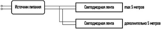 - Не рекомендуется подключать последовательно отрезки общей длиной более 5 м.