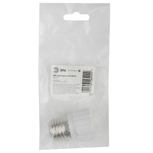 Патрон-переходник для присоединения ламп с цоколем GU10 к светильникам с патроном E27. Изготовлен из термостойкого пластика, химически устойчивого к агрессивным средам.