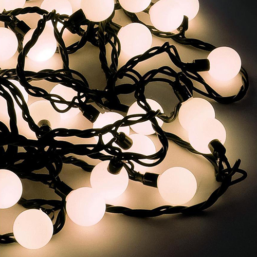 Крупные, необычайно яркие шарики видны издалека не только в темноте, но и при дневном освещении, что делает эту гирлянду незаменимой для украшения больших уличных елей, фасадов зданий, торговых залов магазинов.