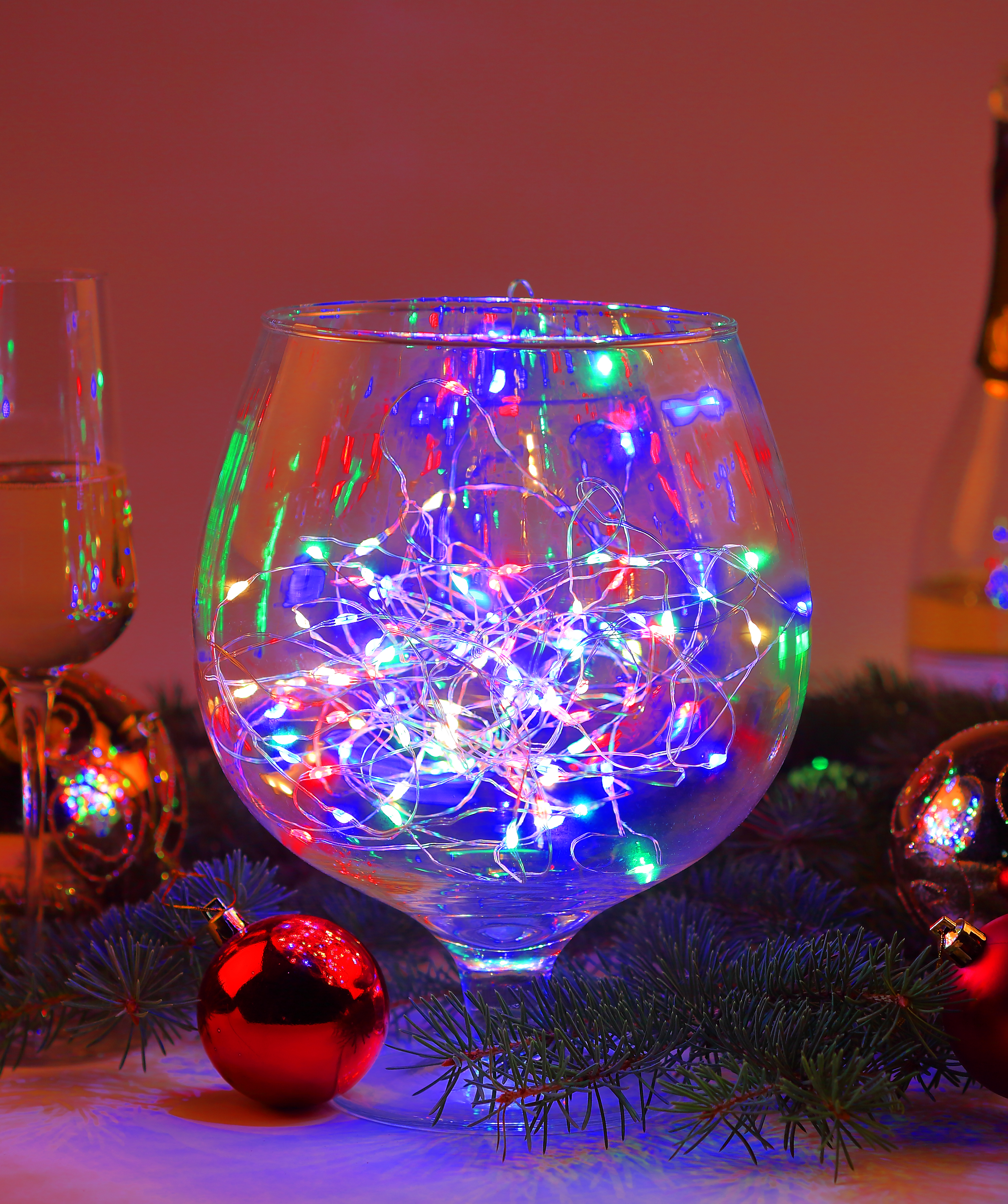 Светодиоды переливаются разными цветами, создавая праздничное настроение.