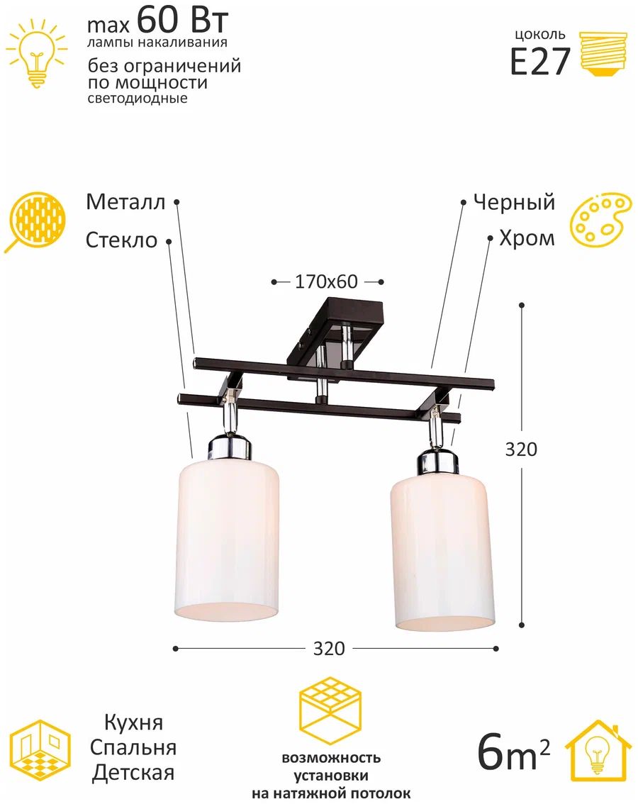 Светильник потолочный "Россвет" РС16780 BK+CR/2C (2 х 60 Вт, E27), черный / хром