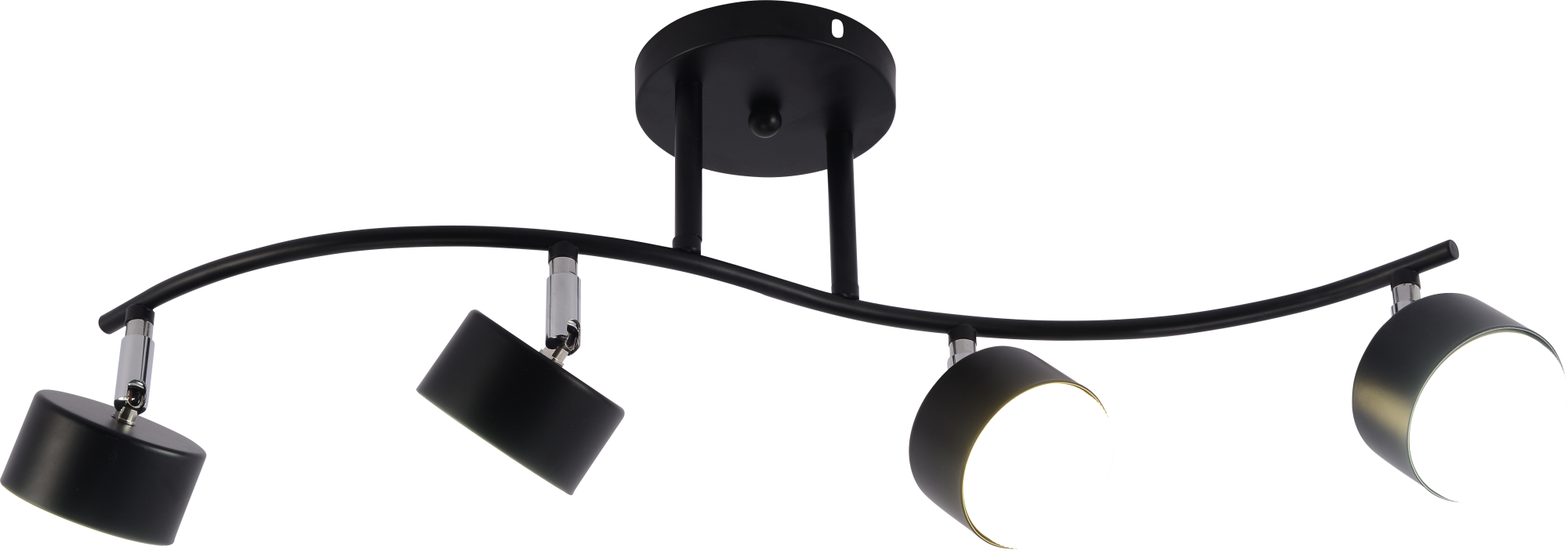 Серия настенно-потолочных светильников чёрного цвета с поворотными плафонами — практичное и современное решение для любого интерьера. Модели на 2, 3 и 4 лампы с цоколем GX53, мощностью до 15 Вт (лампы в комплект не входят). Регулируемые плафоны обеспечивают удобное направление света.