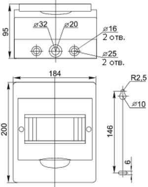 | Наличие шин N, PE | 2 шины (по 4 отверстия) |