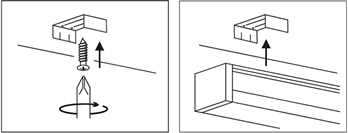- Установите Т-образный винт в паз на тыльной стороне светильника на расстоянии 300 мм от края светильника для достижения оптимального распределения веса.